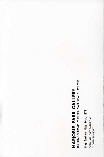 Marjorie Parr Galleries, London - 2nd to 24th May 1975.