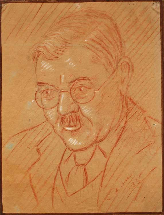 Figure with Glasses. Signed. 1935. Pastel on Paper. Unique. 20x26cms