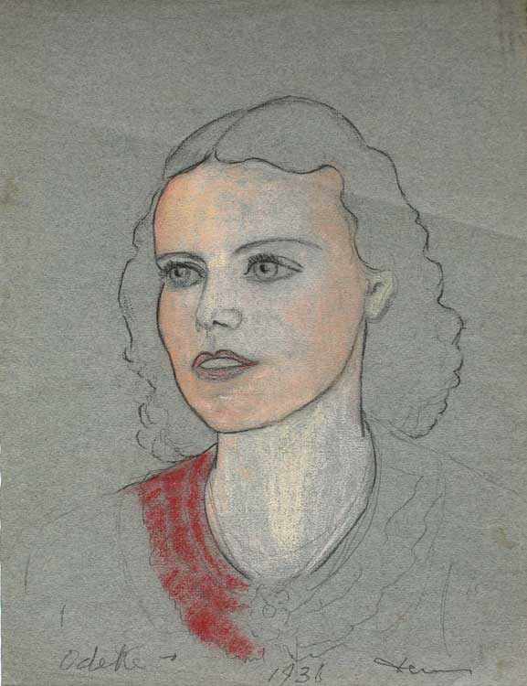 Odette. Signed. 1936. Pastel on Paper. Unique. 24x31cms