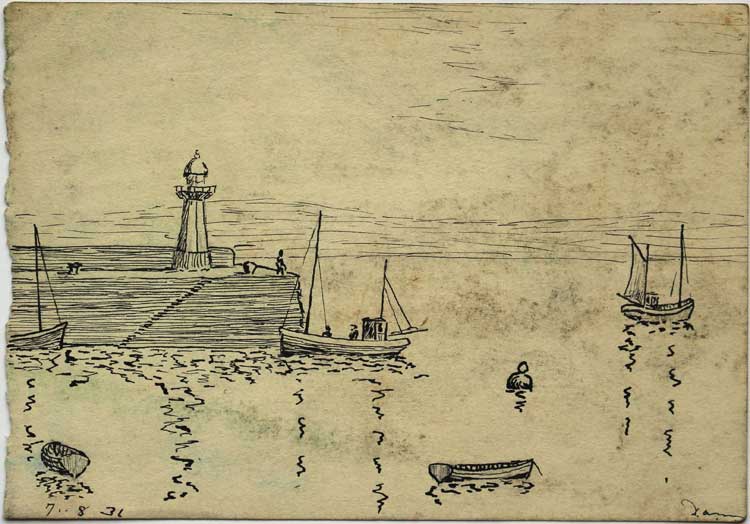 St Ives. Signed. 7th August 1931. Ink on Paper. Unique. 18x12cms