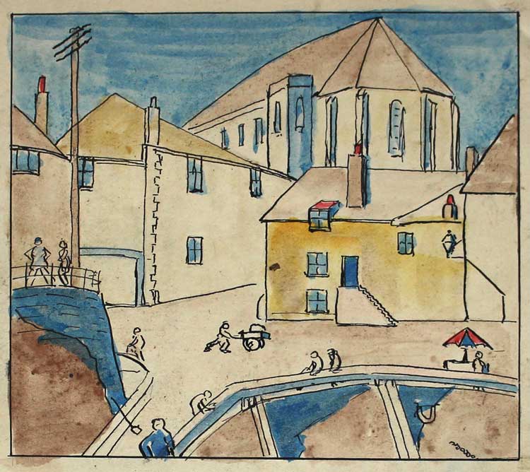 St Ives. Unsigned. 1932. Ink and Watercolour on Paper. Unique. 18x27cms