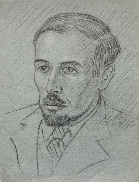 Bearded Man. Unsigned. 1946. Charcoal on Paper. Unique. 24x31cms