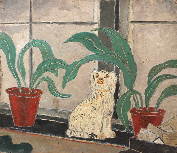 China Dog. Signed. 1947. Oil on Board. Unique. 38x34cms