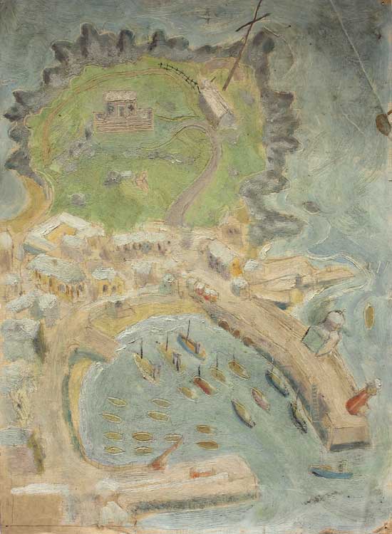 St Ives, Harbour and Island. Signed. 1948. Oil on Oil Board. Unique. 28x38cms
