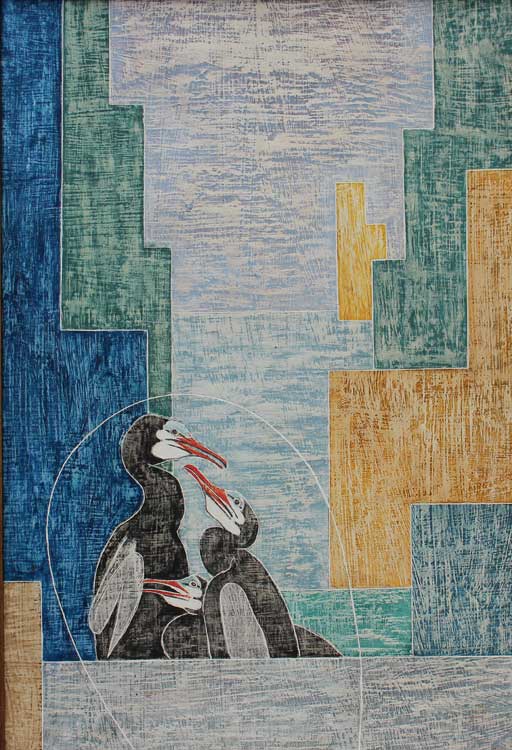 Three Cormorants. Signed. 1952. Oil on Board. Unique. 28x41cms