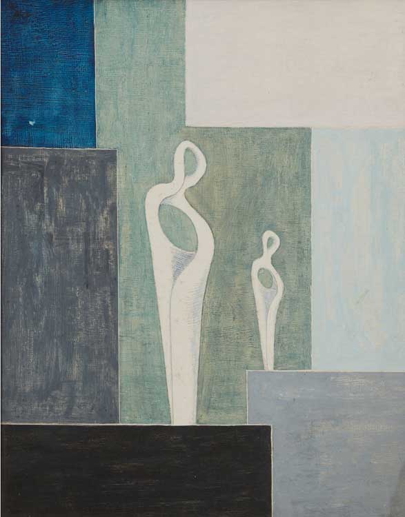 Two Figures and Squares. Signed. 1951. Oil on Board. Unique. 34x44cms