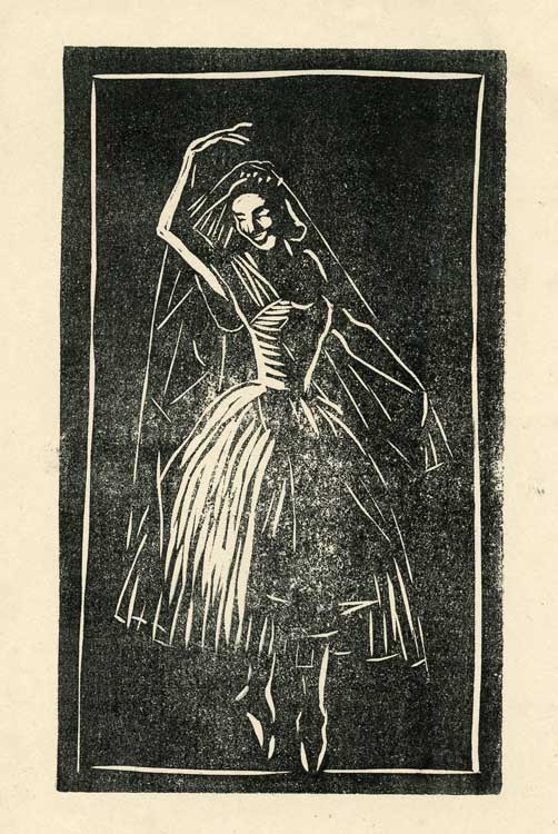 The Dancer. 1949. Linocut print. Unknown edition size. 9x15cms (approx)